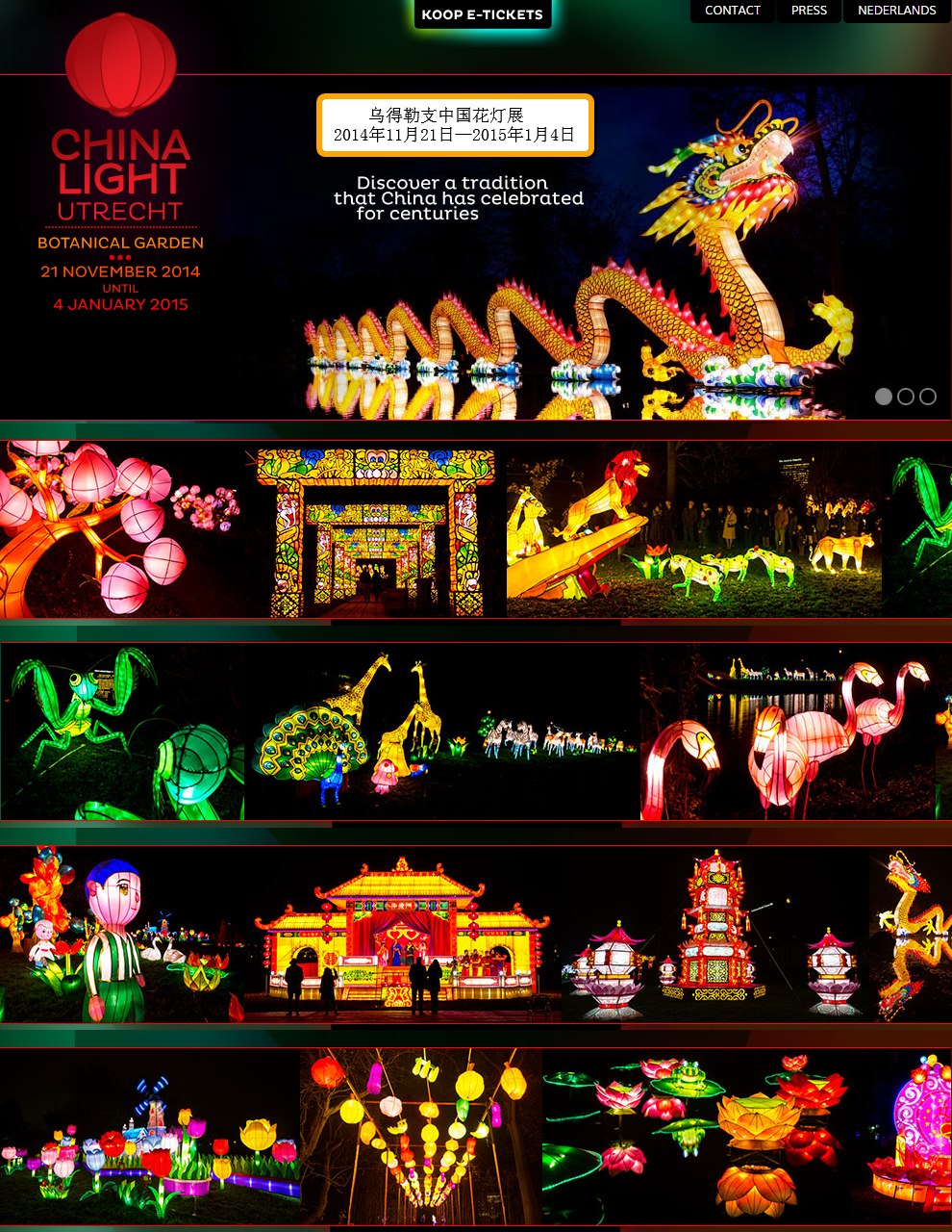 据灯展主办公司介绍,乌得勒支花灯展是继2011年格罗宁根花灯展、2012鹿特丹花灯展之后,中国花灯又一次亮相荷兰。本次展出将利用乌得勒支大学植物园优美的自然环境,灯景结合,打造生态花灯展。灯展还将融入变脸、杂技、民俗服装秀、民乐演奏等中国传统艺术。