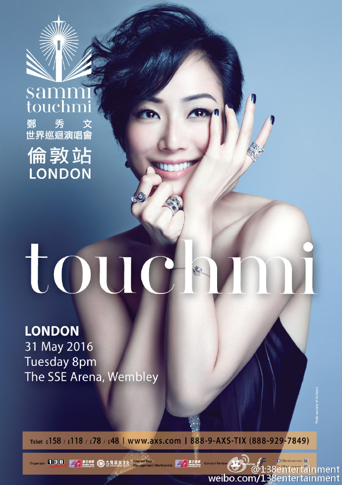 香港樂壇百變天后鄭秀文 Sammi Cheng將首次在英國舉行她的大型巡迴演唱會,把其歌曲帶給期待已久的英國觀眾。 《Touch Mi鄭秀文世界巡迴演唱會-倫敦站》於2016年5月31日席捲倫敦The SSE Arena, Wembley!