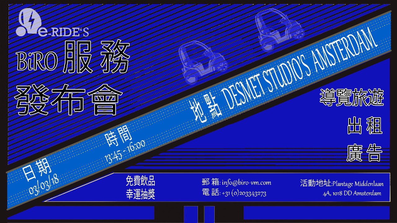 Van Marchalk 集团是荷兰首家提供BiRO电动汽车运营服务的公司,我们将于2018年3月3日在阿姆斯特丹Desmet Studio’s (Plantage Middenlaan 4a,