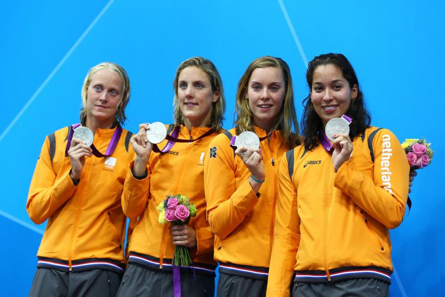 第1银:7月28日因赫-德克, 马伦-费尔德海斯, 费姆克-海姆斯克尔克, 拉诺米-克罗莫维焦约, 亨克林-施鲁德女子游泳 4x100 米自由泳接力获得银牌,成绩是3分33秒79。